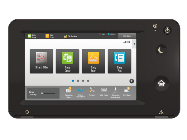 7,0” barevná dotyková obrazovka s funkcí gest přináší možnost snadné uživatelské úpravy přetažením a vložením často používaných ikon na domovskou obrazovku a stavové světelné ukazatele indikují aktuální stav MFP. Každodenní použití je jednoduché a intuitivní; stačí se dotknout, poklepat nebo použít gesta pro okamžitý přístup k veškerým funkcím a nastavením, včetně funkce vyspělého náhledu.